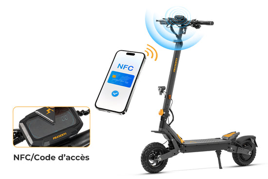 Déverrouillez votre trottinette instantanément d'un simple contact avec une carte NFC ou en saisissant un code sécurisé. Dites adieu aux clés traditionnelles et profitez d'un accès moderne et pratique, avec une protection fiable conçue pour vos trajets urbains quotidiens.