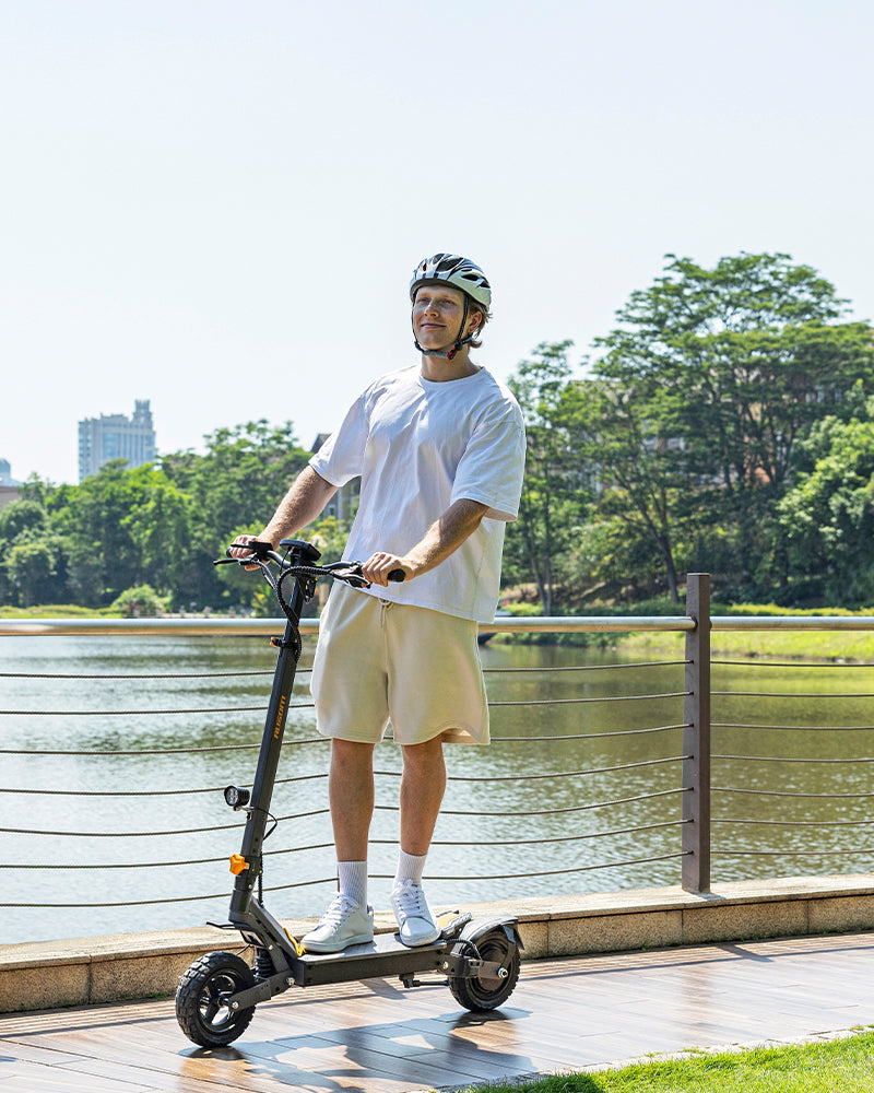 Le deck large et antidérapant offre un espace généreux pour les pieds et une prise sûre, améliorant l'équilibre et le confort général de pilotage. Sa plate-forme optimisée permet de répartir votre poids de manière uniforme, ce qui permet de mieux contrôler les virages serrés et de réduire la fatigue des jambes, ce qui est particulièrement utile lors de longs trajets ou dans le trafic urbain où les arrêts et redémarrages sont fréquents.