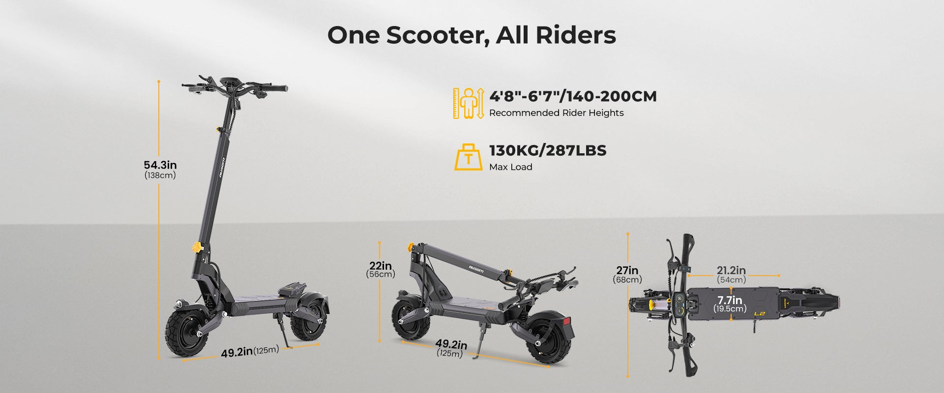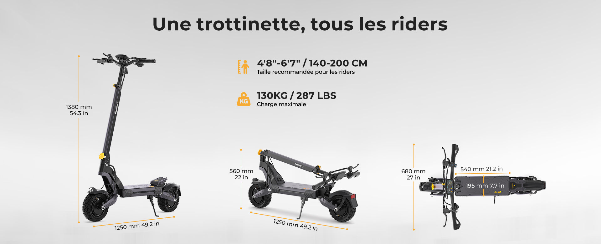 Conçu avec des pneus tubeless à vide de 10"x3", le L2 Dual Motor offre une traction supérieure sur les routes mouillées, les graviers, et les surfaces urbaines rugueuses. Ces pneus robustes résistent aux crevaisons tout en maintenant la stabilité. Que vous traversiez des zones de construction ou affrontiez des trajets sous la pluie, chaque trajet reste stable et prévisible.