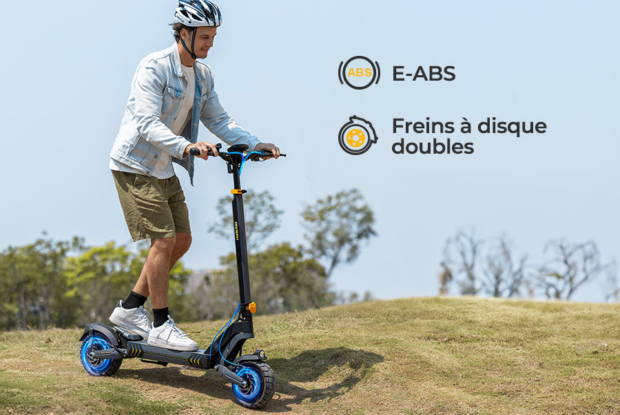Dominez la ville en toute confiance grâce au système de freinage à double disque avec E-ABS. Maîtrisez les freinages brusques dans la circulation, les descentes abruptes et les chaussées mouillées, tout en conservant une stabilité à toute épreuve. Qu'il pleuve ou qu'il fasse beau, votre freinage reste précis et fiable.